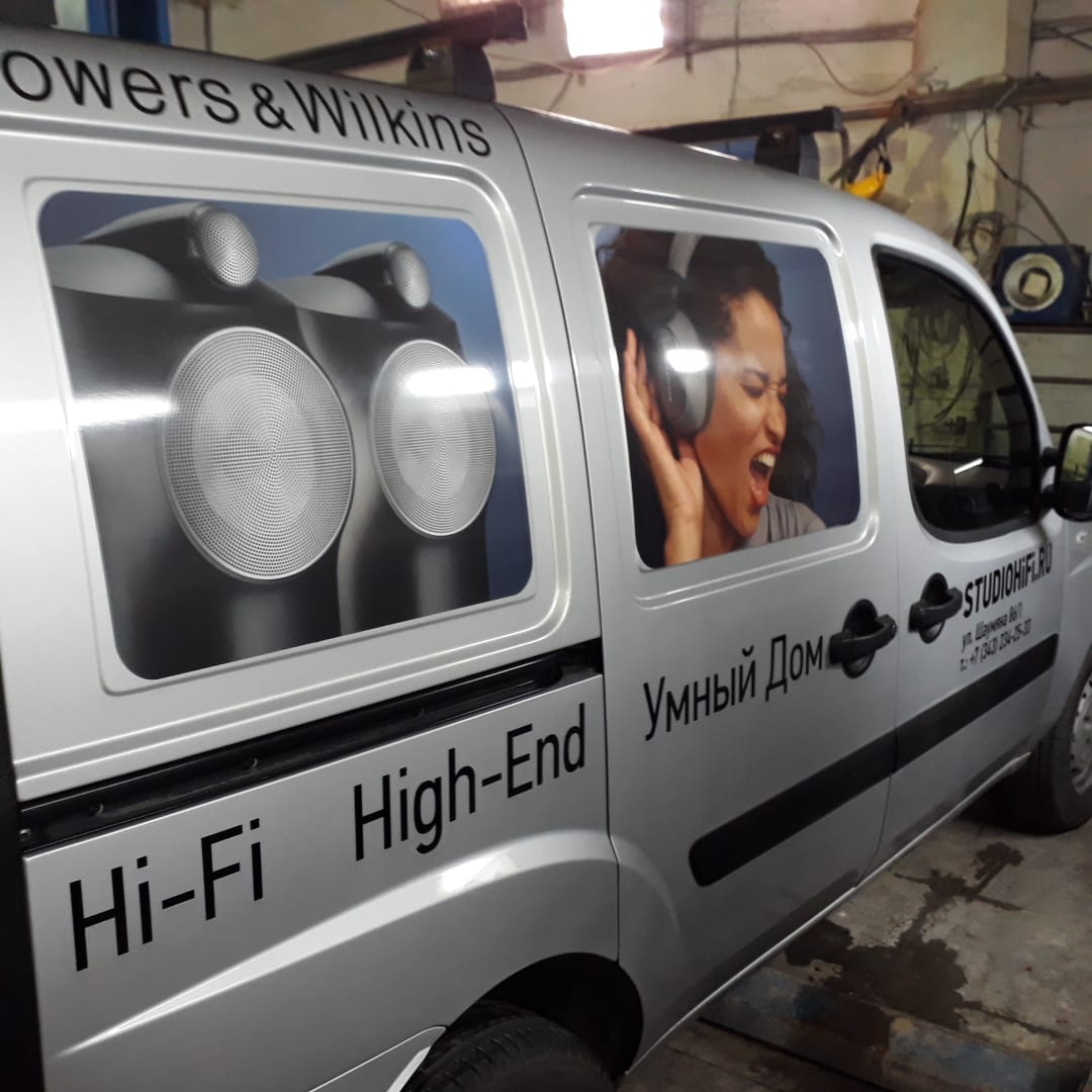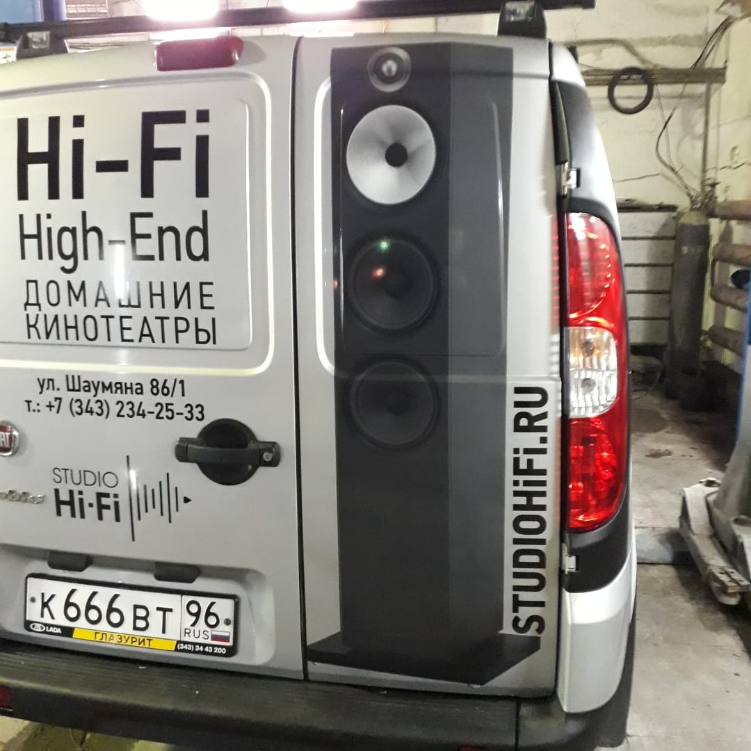Чем ярче и индивидуальнее будет забрендирован ваш транспорт, тем эффективнее заработает реклама. В «Print Ural» разработкой и созданием передвижной рекламы занимаются только специалисты высшей квалификации, знающие все тонкости работы. Как выгодно работает креативный дизайн при брендировании, можно увидеть на примере фотографий автомобиля «Fiat» для компании «StudioHiFi.ru». В данном случае брендирование было сделано «под ключ». Такое брендирование включает в себя: создание макета, изготовление необходимых наклеек, очистку рабочей поверхности и непосредственный монтаж виниловых наклеек на нее.
